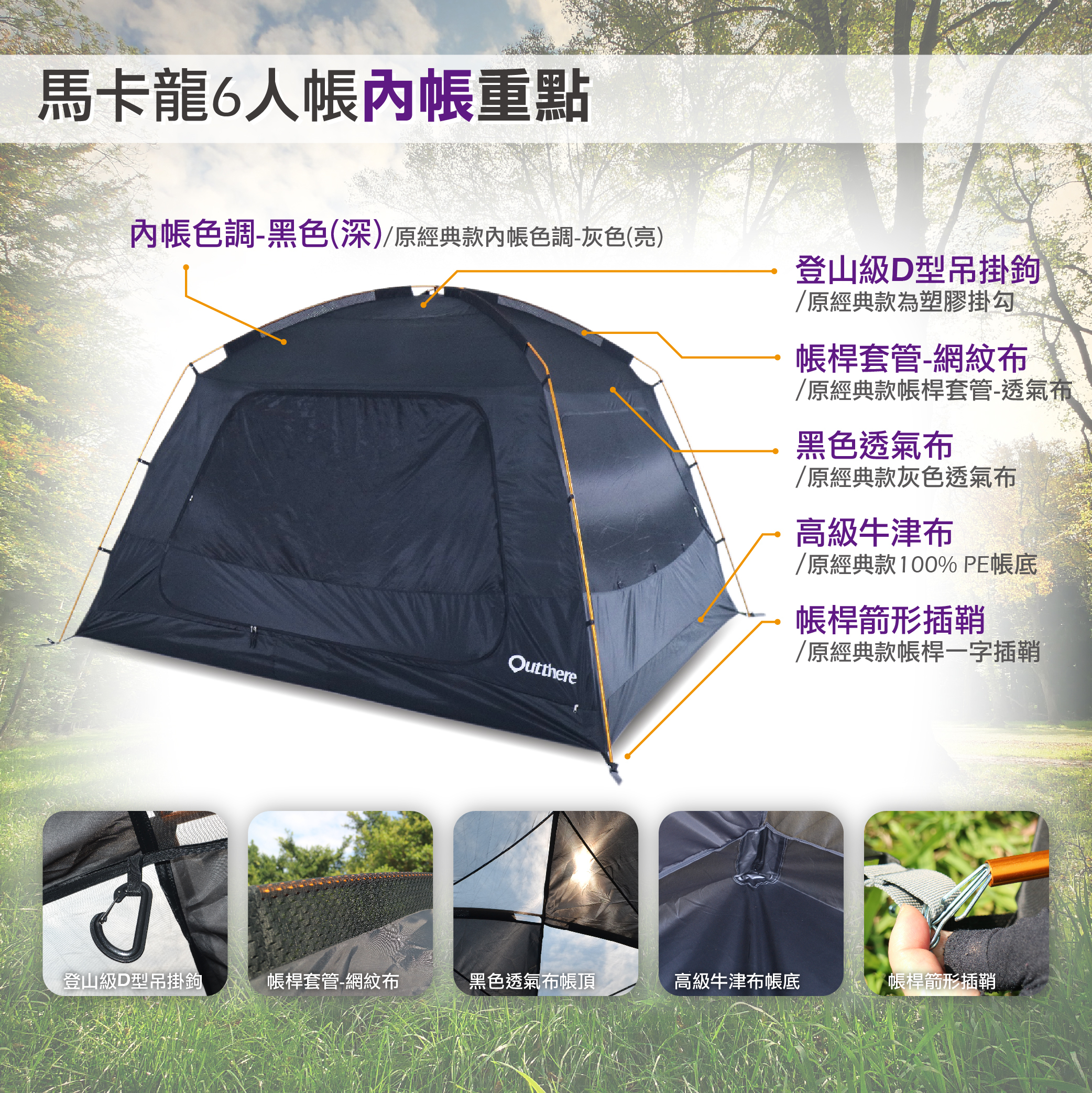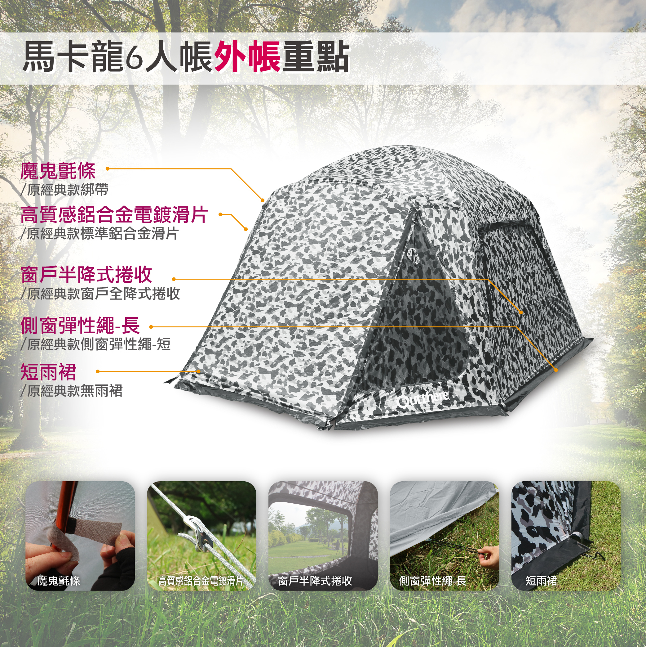 今年,我們將黑白迷彩應用在馬卡龍6人帳上,