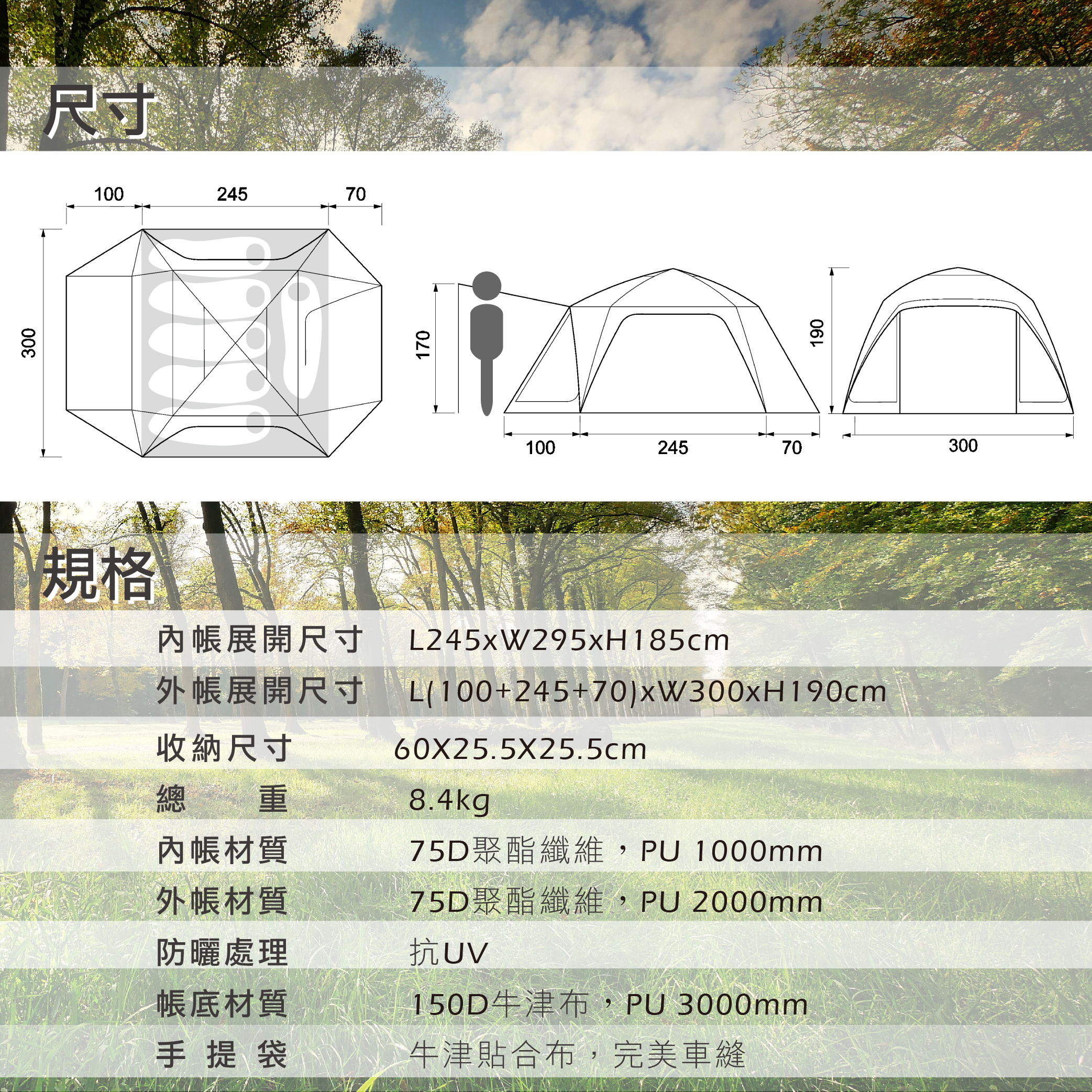 ● 外帳展開尺寸|(100+245+70)x300x190cm