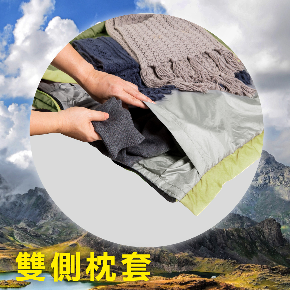 信封型設計,可上下拼接成大型睡袋,除兩側枕套的貼心設計外,認明LYCRA授權的標章,每平方米都扎扎實實的填充150g原廠100% LYCRA Thermolite 七孔科技纖維,舒適溫度再下修,讓您溫暖舒適再升級。