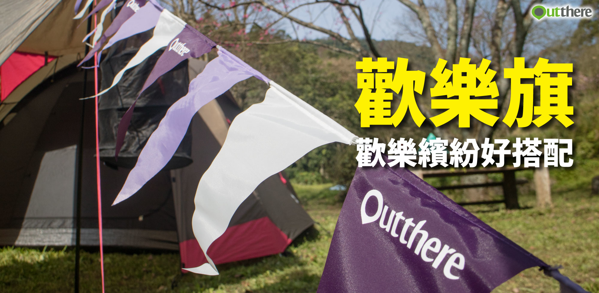 看著隨風飄逸的彩色旗面,露營的心情就都來了。